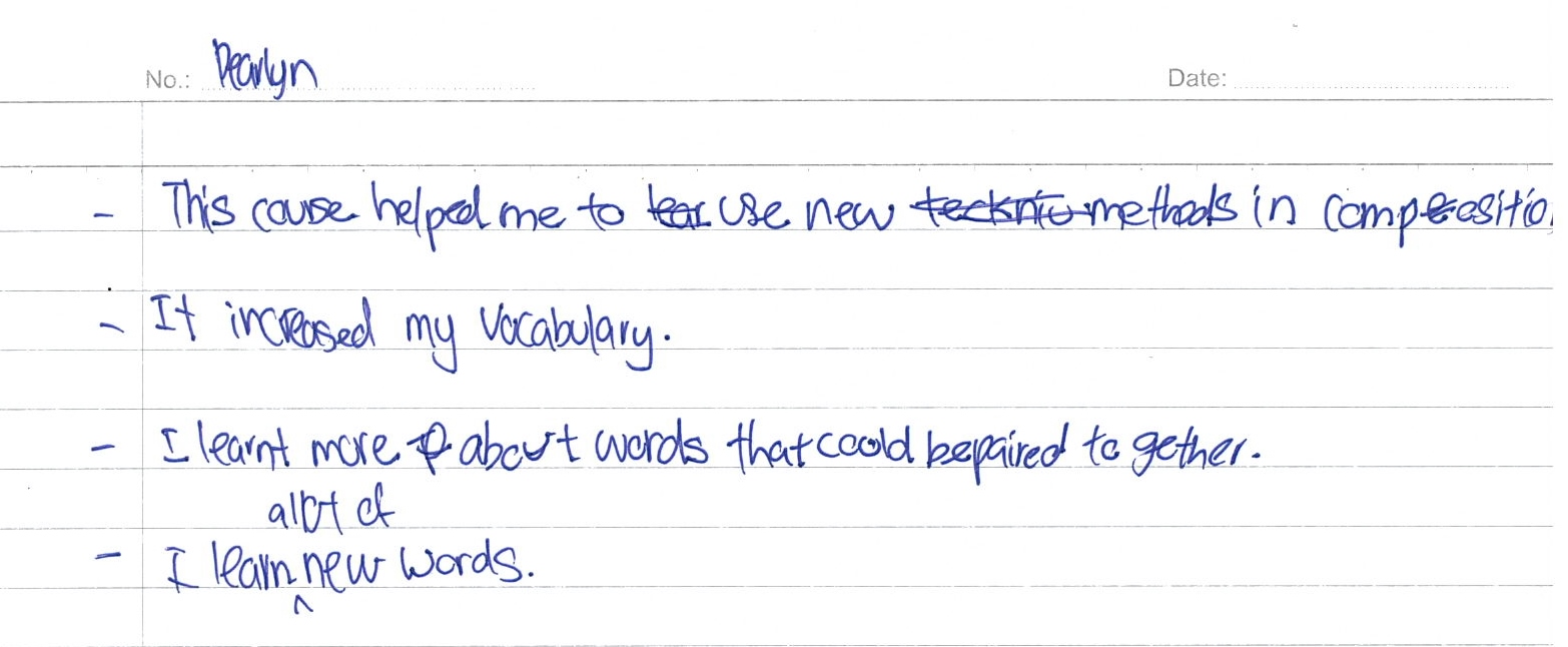 makes her class very enjoyable… She also taught us critical thinking, which is the most useful skill that students really need to learn and apply in real life.”Miki Teng, Singapore Raffles Music College