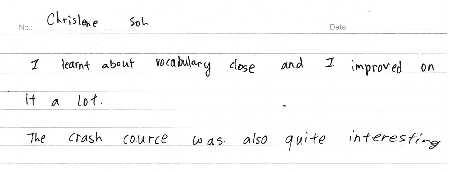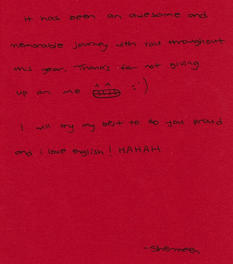 “I really love Ms Tricia’s classes because of the way she taught us. When I asked questions, she would get my point and explain to me clearly. Ms Tricia is like a mentor to me rather than a regular English teacher. She’s an awesome teacher who cares about the students a lot.”